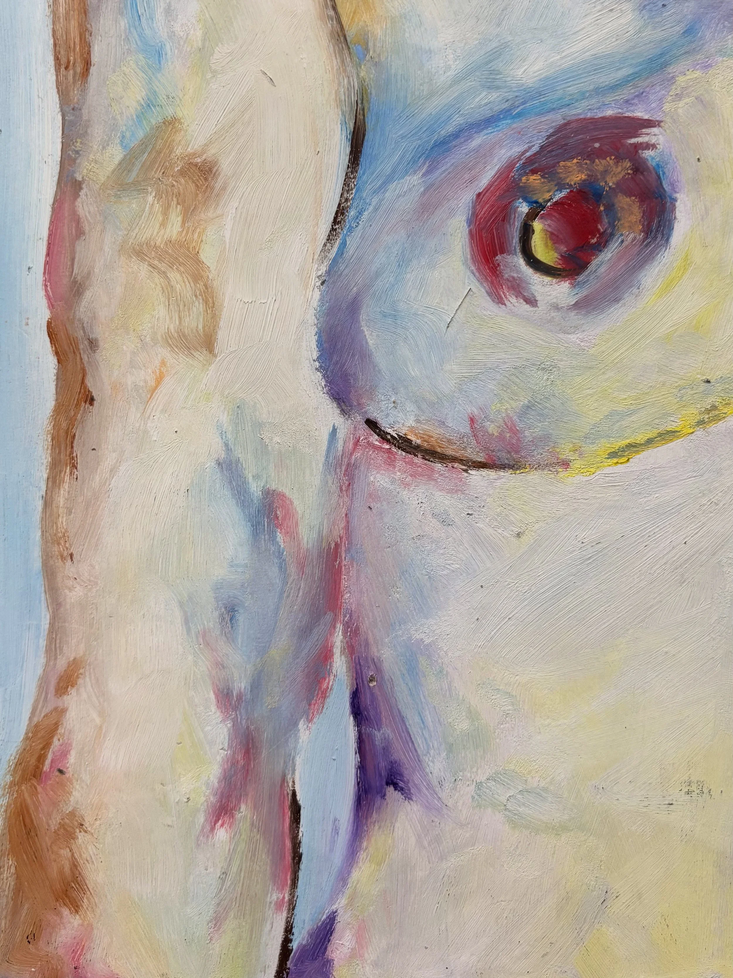 "Painting, for me, is the act of translating what I see and feel into a visual language that others can interpret—giving form to emotion and experience through paint. It’s not about perfection. While I sometimes adopt a photo-realist approach, my intention is always to retain the essence of painting: visible brushstrokes, texture, and the balance between movement and stillness. I’m drawn to both colour and form, often bending the rules of realism to create space for imagination, mistakes, and unexpected outcomes. I enjoy experimenting with both traditional and unconventional techniques, frequently working directly with my hands on canvas or paper to deepen that physical connection with the work."